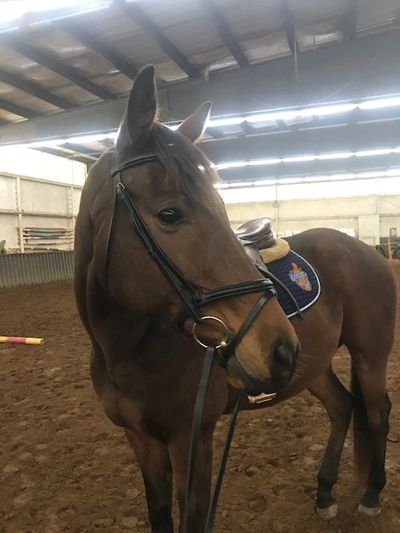 Winter Solstice aka Sully is a 11 year old Thoroughbred cross who stands around 16h tall. Sully is a sweet soul who is quiet enough for the smallest of riders while being a fun ride for more advanced riders. He has proven to be a wonderful teacher and patient horse. A cute natural jumper, Sully may not be the bravest over fences but he tries his heart out! Sully is also a wonderful babysitter for green horses, with his quiet brain and reliable nature.